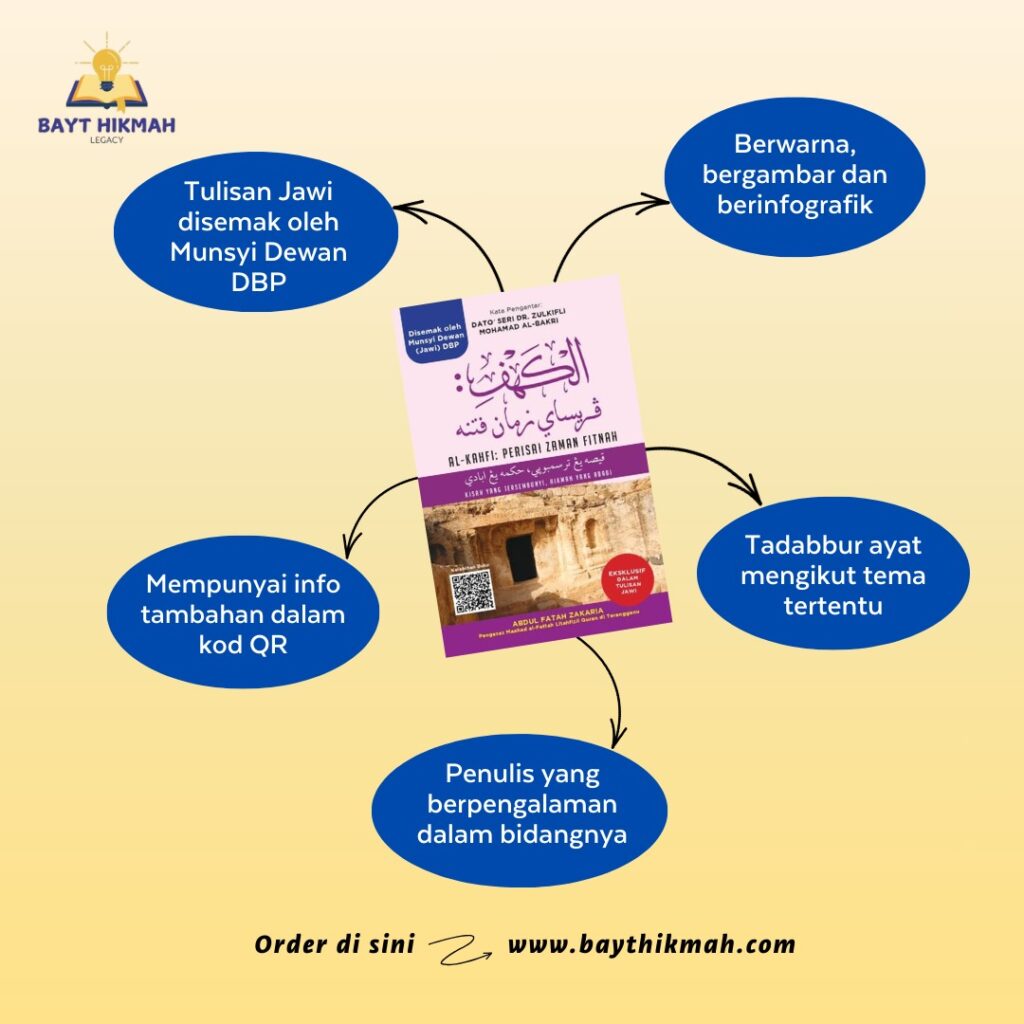 Buku ini adalah pilihan yang tepat bagi pembaca yang ingin memahami setiap ayat dalam surah al-Kahfi dengan lebih terperinci dan memahami pengajaran yang terkandung dalam setiap kisah di samping memartabatkan semula Tulisan Jawi.
